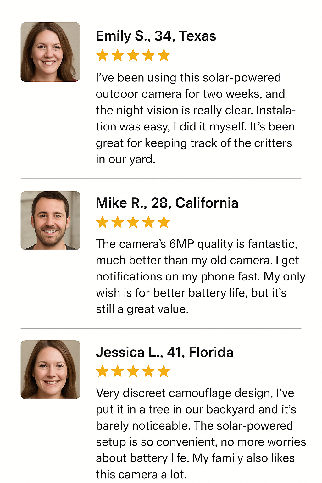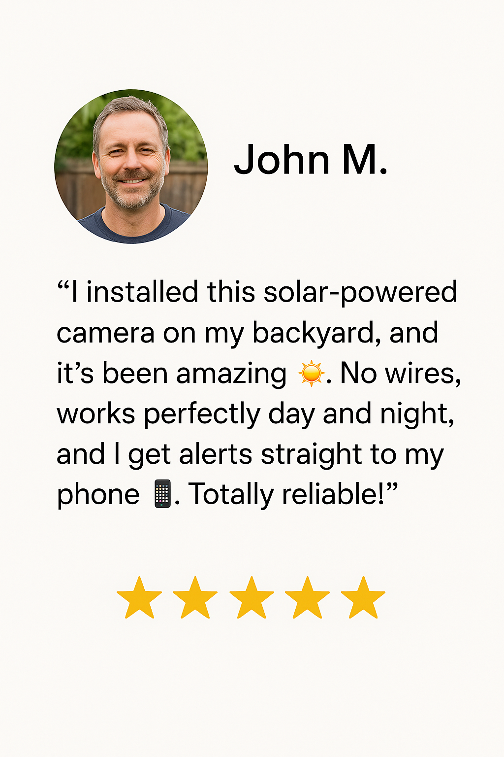 Harness the power of the sun ☀️ and say goodbye to complicated wiring and extra electricity bills 💡! Our solar-powered design keeps your camera charged all day 🌞, ready to protect your home all night 🌙. No need to worry about power outages or messy installations—just mount it anywhere with sunlight 🏠🔧 and enjoy endless, eco-friendly energy 🌍. Reliable, cost-saving, and worry-free 🛡️✨.