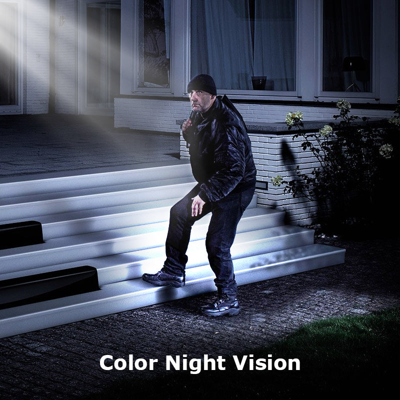 Infrared + full-color night vision ensures clear details even in pitch dark — see faces, license plates, and animals clearly up to 65ft away.