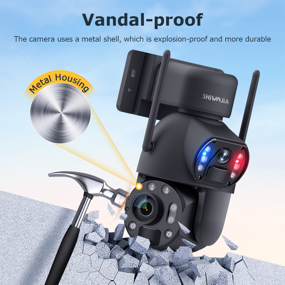 SHIWOJIA 20W Solar Battery 36X Zoom Red Blue Alarm FloodLight PTZ Camera 4G SIM / WIFI Cellular Security Camera Dual-Lens,6MP Solar Camera Wireless Outdoor,Color Night Vision,Dual Screen,Built-in Battery