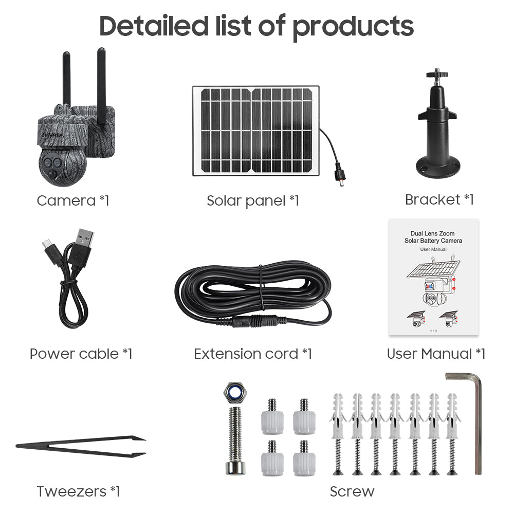 SHIWOJIA 6MP Solar Cameras 4G SIM / WIFI Wireless Outdoor 360° View Animal Monitoring Camouflage Color 12X Zoom Solar Battery PTZ Camera