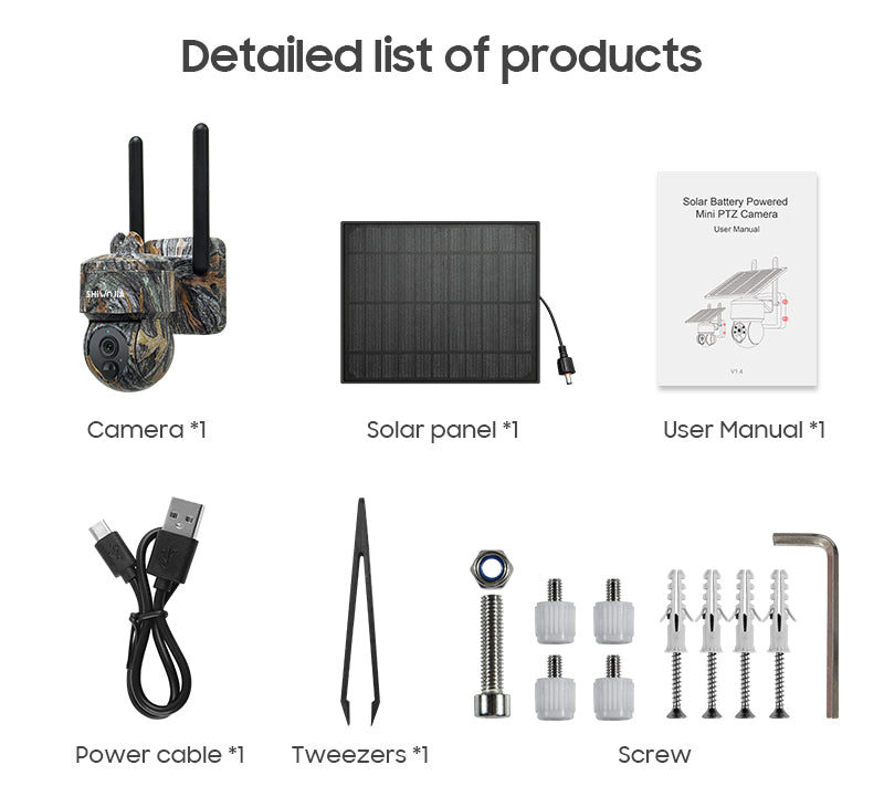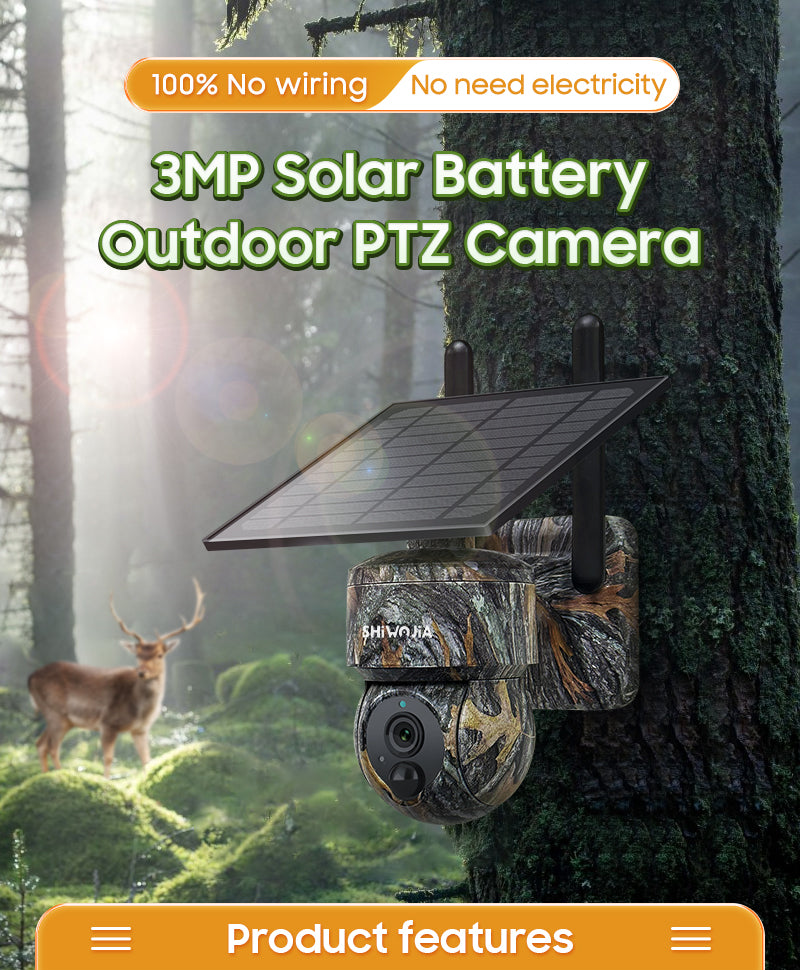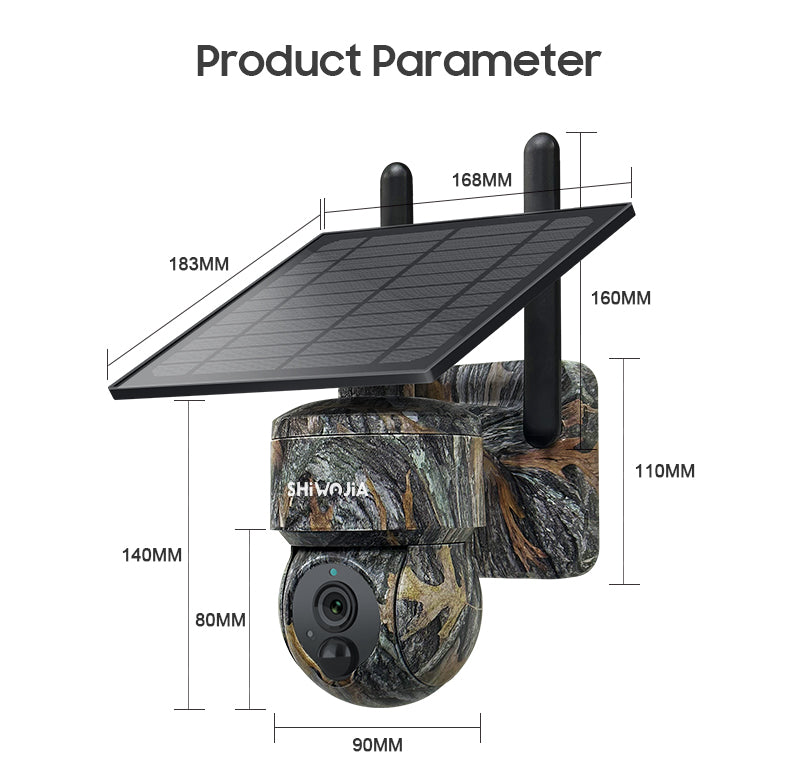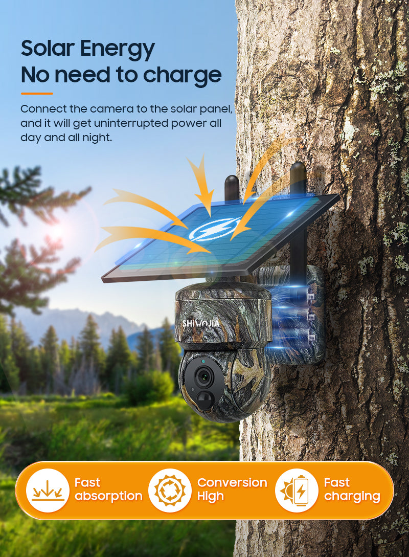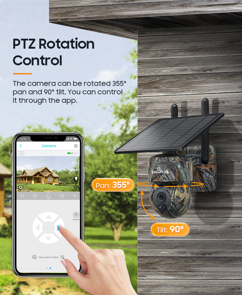 SHIWOJIA Camouflage Color Solar Battery PTZ Camera.4G SIM / WIFI 3MP 360° View Animal Monitoring.Built-in Battery